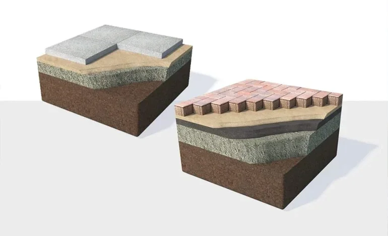 Our meticulous process includes proper base installation,8-12 inch base compaction, the use of poles for precise grading, high-quality screening/High performance bedding , poly sand in joints, sealant on stones, and a grit additive for non-slip winter safety.